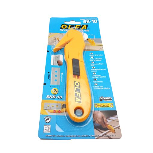 Olfa SK-10 được trang bị một miếng thép không gỉ nằm ở trên cùng đầu dao để tách bao bì, băng dính. Phần này giúp giảm các mảng bám và kéo dài tuổi thọ của lưỡi dao.