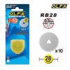 Hộp lưỡi dao OLFA RB28-10 dùng để cắt vải OLFA 28m/m RTY-1/G, mở thử OP-1. Chúng rất phù hợp với các dự án có quy mô nhỏ, thích hợp sử dụng cho máy cắt quay OLFA 28mm, lý tưởng cho các góc kín.